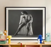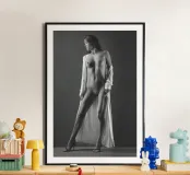 Uno scatto di nudo artistico di Laura in vestaglia bianca