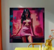 Layla, con il suo abito rosa, fa scalpore: una modella seducente, la mora Layla.