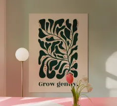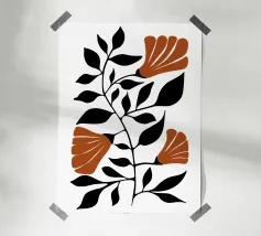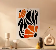 Un'opera d'arte astratta botanica, in cui audaci petali sovrapposti in vibranti rossi, verdi e morbidi beige creano un'armoniosa danza di colori e forme. Questo design sorprendente dona un tocco moderno e ispirato alla natura a qualsiasi spazio, perfetto per tele, poster o abbigliamento.