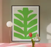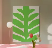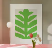 La rappresentazione semplice e stilizzata di una pianta frondosa è caratterizzata da forme audaci e simmetriche in un vivace colore verde. Il design minimalista enfatizza le linee pulite e l'estetica moderna.