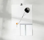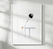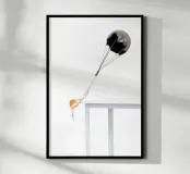Scultura concettuale: Paracadute d'uovo! Un'opera d'arte sorprendente e surreale che presenta un paracadute lucido e scuro che trasporta un tuorlo d'uovo e un bianco esagerati, che gocciola drammaticamente oltre il bordo di un tavolo bianco minimalista. L'immagine ad alto contrasto e la tensione tra il metallo duro e riflettente e il liquido fragile che gocciola creano una dichiarazione potente sull'equilibrio, la fragilità e la fuga. Un'opera da parete perfetta per un ufficio moderno, una casa minimalista o un collezionista d'arte contemporanea. Arte concettuale, Surrealismo, Scultura, Uovo, Tuorlo, Paracadute, Fragilità, Equilibrio, Minimalista, Arredo ufficio moderno