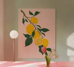 limoni arance agrumi foglie verdi fette di arancia fette di limone frutta elementi botanici accenti floreali petali vibrazioni tropicali tema estivo fogliame motivo naturale agrumi frutta illustrativa colori vivaci freschezza motivo botanico ispirato alla natura