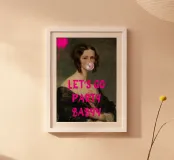 Preparatevi a festeggiare con "Let's Go Party Babyy", una vivace stampa pop art che dà un tocco giocoso e moderno alla ritrattistica classica. Questa accattivante opera d'arte raffigura un'illustre figura storica, con uno sguardo diretto e invitante, che soffia spensieratamente una bolla di gomma da masticare. Il testo audace e vibrante in rosa caldo "LET'S GO PARTY BABYY" sovrasta l'immagine, facendo una dichiarazione chiara ed energica. Una goccia di vernice rosa nell'angolo in alto a sinistra aggiunge un'atmosfera urbana e tagliente. È una miscela perfetta di fascino senza tempo e divertimento contemporaneo, ideale per aggiungere un tocco di energia e di stile a qualsiasi