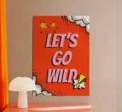 Rendi unica la stanza dei tuoi bambini con il poster "Let's Go Wild". Questo design energico e colorato stimola la creatività e invita all'avventura. Ideale per la camera dei ragazzi e le aule scolastiche.