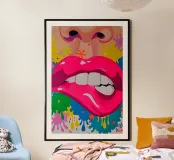 Tuffatevi nel mondo vibrante e giocoso della pop art contemporanea con questa stampa audace e accattivante. L'opera presenta un primo piano della bocca di una persona con labbra lucide e piene di colore rosa caldo, che si morde sensualmente il labbro inferiore per rivelare denti bianchi e brillanti. Lo sfondo è un'esplosione caotica ma energica di schizzi di vernice colorata in giallo, blu, arancione e verde, che crea un contrasto dinamico che amplifica l'immagine centrale. Questo pezzo è perfetto per aggiungere un tocco audace, provocatorio e di tendenza a qualsiasi interno moderno, evocando un senso di fiducia e divertimento. Realizzato con un'eccezionale precisione digitale