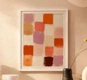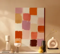 Una tranquilla griglia astratta dipinta con tonalità calde e tenui. Quest'opera d'arte offre struttura senza rigidità e si integra perfettamente in spazi moderni e sereni.