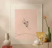 Line art minimalista di uno snowboarder in azione, che cattura la velocità, l'agilità e il movimento freestyle. Perfetto per gli appassionati di sport invernali e per le decorazioni ispirate all'avventura.