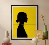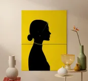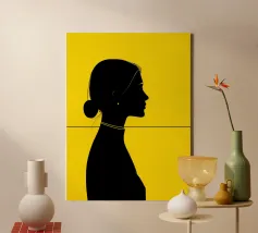 A contemporary minimalist portrait defined by strong contrast and a precise horizontal line that structures the composition. The black silhouette stands out against a vivid yellow background, creating a bold graphic balance between form and space. Clean contours and restrained details give the artwork a modern, confident presence, making it an impactful accent for design-focused interiors.