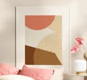Linee Colore Forme - Rosa Oro Marrone poster con telaio in legno