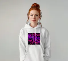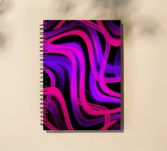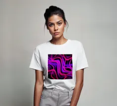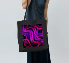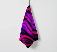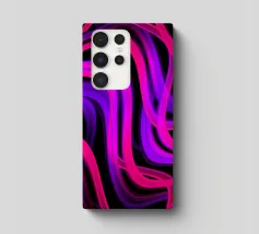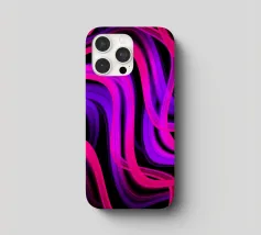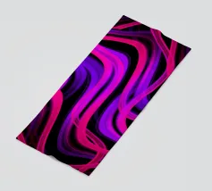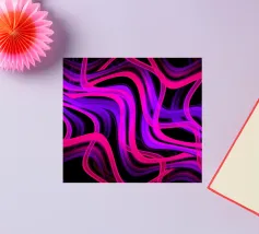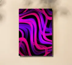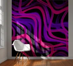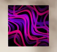 Linee neon viola e rosa a forma di onde su sfondo nero