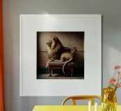 Un ritratto surreale ma elegante che reinterpreta il potere attraverso una calma compostezza. Un leone giace tranquillamente su una sedia decorata, con un atteggiamento rilassato ma sicuro, che unisce una forza indomita a una raffinata domesticità. L'ambientazione classica e la luce morbida e direzionale conferiscono alla scena un carattere pittorico e senza tempo, mentre la disposizione inaspettata trasforma l'immagine in qualcosa di stravagante e autorevole allo stesso tempo.