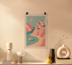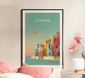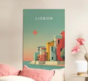 Un tributo geometrico e pulito al fascino costiero di Lisbona, questa opera d'arte dai toni pastello cattura la moderna architettura mediterranea immersa nella morbida luce del tramonto. I blocchi minimalisti, i colori tenui e l'orizzonte poetico evocano serenità e voglia di viaggiare, perfetti per gli amanti dell'arredamento e i sognatori di viaggi.
