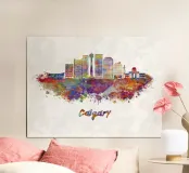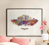 Lo skyline di Calgary in acquerello poster con telaio in plastica