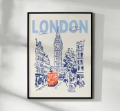 Classica, vivace e ricca di carattere, questa stampa artistica ispirata a Londra cattura il fascino della città attraverso linee espressive e contrasti audaci. L'iconica torre dell'orologio si erge orgogliosa sopra una vivace scena di strada, incorniciata da edifici storici e dalla vita quotidiana della città.