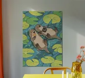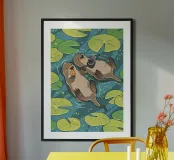 otters lily pads water river camera floating fish wildlife nature aquatic-life photography playful relaxation leaves ducklings pond wild-animals illustration cartoon-animals friendly