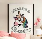 Look! it's a f*ck you-unicorn! poster con telaio in legno