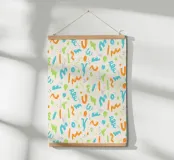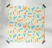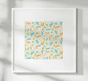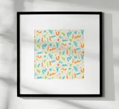 Questo disegno presenta una composizione astratta di linee e forme fluide in colori vivaci. Gli elementi sono disposti in modo armonioso e conferiscono al disegno un aspetto dinamico e giocoso.