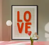 Questo moderno poster tipografico con la parola "Love" porta colore, energia e un'atmosfera positiva in ogni stanza. Le lettere audaci sullo sfondo a griglia discreto conferiscono al motivo un aspetto fresco e contemporaneo. Ideale per il soggiorno, la camera da letto o gli spazi creativi, è perfetto per chi desidera arredare la propria casa con un messaggio chiaro e amorevole.