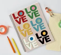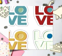 Schriftzug LOVE in verschiedenen Farben. In den Assets findest Du 6 Designs in unterschiedlichen Farben. Das Motiv ist auf transparentem Untergrund erstellt. So kannst Du eigene Hintergrundfarben wählen.