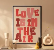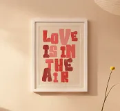 Lasciate che l'amore riempia il vostro spazio con questa affascinante stampa Love Is in the Air! Caratterizzato da una tipografia audace e sognante, questo disegno cattura la magia del romanticismo e la sensazione di amore intorno a voi. Perfetto per San Valentino, matrimoni, anniversari o semplicemente come promemoria quotidiano della forza dell'amore. Aggiungetelo alla vostra camera da letto, al vostro salotto o regalatelo a qualcuno di speciale, perché l'amore merita sempre di essere celebrato!