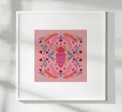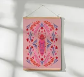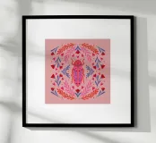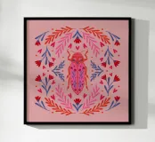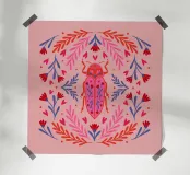 Un'illustrazione stravagante e commovente con un affascinante insetto circondato dall'amore. Questo disegno dolce e stravagante unisce la giocosa arte degli insetti a un tocco romantico, rendendolo perfetto per l'arredamento di San Valentino o per aggiungere un pizzico di simpatia a qualsiasi spazio.