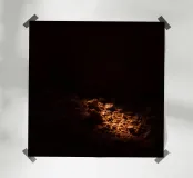 Un leggero fascio di luce squarcia l'oscurità, evidenziando il terreno ruvido e strutturato di una grotta. Il tenue bagliore dona calore all'ambiente altrimenti in ombra.