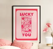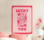 "Lucky You" Re di cuori Pop Art | Stampa retro del gioco di carte poster con telaio in plastica