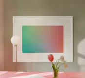 Stampa artistica Lumen 01 con cornice in legno di alta qualità, perfetta per arredare con stile moderno e minimalista il soggiorno o l'ufficio. Riproduzione di arte astratta dai toni delicati e sfumature pastello, ideale come regalo elegante per amanti del design contemporaneo. Prodotta secondo standard sostenibili europei.