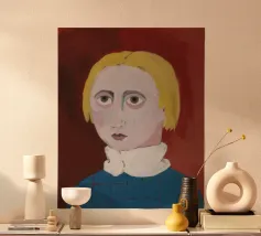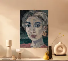 Un ritratto inquietante emerge in audaci pennellate di rosa, giallo e carbone su un campo di cobalto. Texture morbide e impressionistiche si fondono intorno a grandi occhi contemplativi che sembrano contenere luci e ombre interiori in egual misura. La tavolozza contrastante e la pennellata fluida evocano emozioni fugaci e meraviglie introspettive, invitando gli spettatori a soffermarsi su ogni sfumatura di forma e colore. Stampata in qualità d'archivio, quest'opera è un ponte tra l'astrazione espressiva e il realismo del ritratto e costituisce un pezzo forte per salotti, studi o pareti di gallerie che desiderano profondità e vivacità.