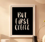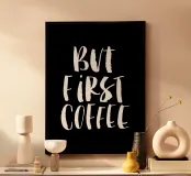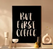 Date il via alla vostra giornata con l'elegante stampa tipografica "But First Coffee". Caratterizzato da una delicata scritta bianca dipinta a mano su un sorprendente sfondo nero, questo disegno cattura perfettamente il mantra degli amanti del caffè. Ideale per cucine, sale da pranzo, uffici o caffè alla moda, aggiunge un tocco di umorismo e stile a qualsiasi spazio. Questa versatile opera d'arte è disponibile anche su capi d'abbigliamento, custodie per telefoni e borse, ed è il regalo perfetto per gli amanti del caffè. Che siate persone mattiniere o meno, questa stampa serve a ricordarvi di assaporare i piccoli piaceri della vita. Eleva l'arredamento della tua cucina!