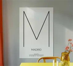 Adoro andare a Madrid in Spagna. Amo viaggiare in tutto il mondo. Adoro visitare le città, le montagne e il deserto. Tipografia in nero e bianco (trasparente). È possibile cambiare il colore dello sfondo. Poster tipografico minimalista di un viaggiatore.