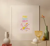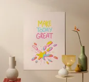 Aggiungi un tocco di ispirazione e colore alla tua stanza con il poster "Make today great". Questo design vivace presenta un messaggio motivazionale perfetto per incoraggiare una mentalità positiva ogni giorno. Ideale per la camera da letto, l'ufficio o lo spazio creativo, questo poster rende ogni ambiente più luminoso e allegro.