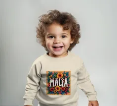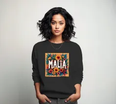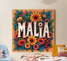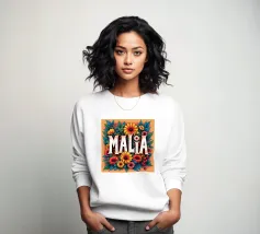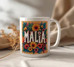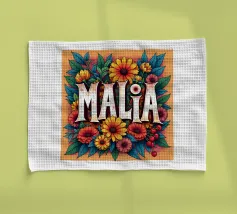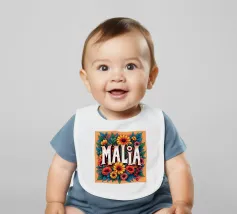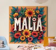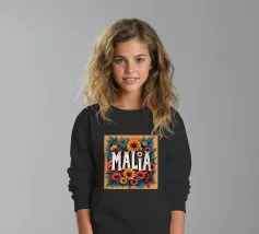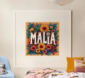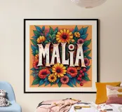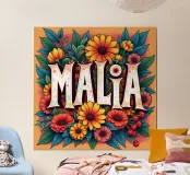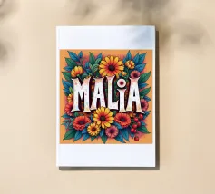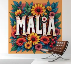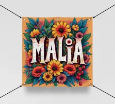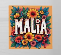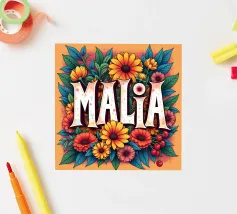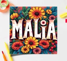 Malia, un nome dai molti significati, tra cui quello di dolce miele, che impreziosisce il nome con fiori alternativi e colorati.