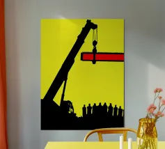 Questa immagine raffigura l'iconica gru del cantiere navale della città. Il design geometrico e i colori vivaci la rendono perfetta per gli appassionati di design scandinavo e di arte di ispirazione industriale.
