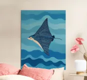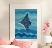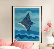 Porta l'oceano a casa tua con questa stampa artistica incorniciata in legno "Blue Manta Ray" di Sienna Atelier. Perfetta per decorare una sala da pranzo, un soggiorno o una camera da letto con un tocco di eleganza marina e serenità.