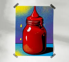 Una simpatica illustrazione di un condimento a base di sciroppo d'acero, con un simpatico musetto a dargli vita.