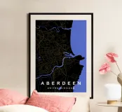 Mappa della città di Aberdeen, Regno Unito, nero e oro poster