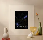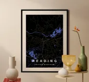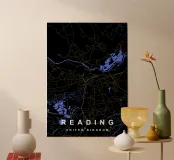 Mappa della città di Reading Regno Unito nero e oro poster con telaio in alluminio
