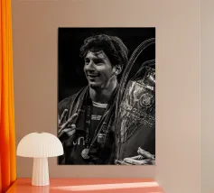 Scopri l'eleganza della stampa artistica incorniciata in legno dedicata a Marc Márquez. Ideale per gli appassionati di motociclismo, questa decorazione murale si adatta perfettamente a qualsiasi ambiente, dal soggiorno alla camera da letto. Aggiungi un tocco di stile e passione al tuo spazio.