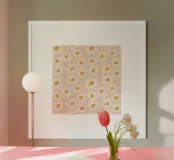 Un affascinante motivo a margherita con petali bianchi e centri giallo oro su un caldo sfondo beige. Questo allegro disegno floreale aggiunge un'atmosfera accogliente ed edificante a qualsiasi ambiente, perfetto per le decorazioni primaverili ed estive, per le camerette moderne o per gli interni di ispirazione boho.