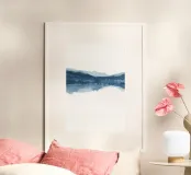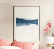 Immagine 1 di un set di 2 immagini con un paesaggio astratto ad acquerello in blu scuro e bianco. È possibile completare il set o utilizzare ciascuna immagine in modo indipendente.