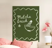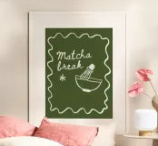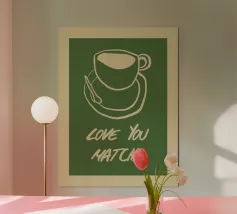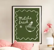 Scopri l'arte della pausa con il nostro sorprendente art print "Matcha Break"! Perfetto per gli amanti del tè matcha e per chi cerca un tocco di design moderno nella propria casa. Questo pezzo unico si adatta perfettamente a qualsiasi stanza, che sia la cucina, il soggiorno o anche un'area relax. La combinazione di colori rilassanti e l'illustrazione minimalista rende questo print ideale per aggiungere un'atmosfera zen alla tua vita quotidiana. Sia che tu stia decorando il tuo spazio personale o cercando un regalo originale, questo quadro è la scelta giusta! Facile da montare, e realizzato con materiali di alta qualità, farà sicuramente colpo sui tuoi ospiti!