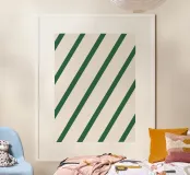 Un motivo minimalista di linee diagonali verde intenso su uno sfondo morbido e caldo color crema. La spaziatura equilibrata e il ritmo costante creano un senso di ordine, calma e tranquilla sicurezza. Pulito e senza tempo, questo disegno si adatta perfettamente a interni moderni, scandinavi e contemporanei, aggiungendo struttura senza sovraccaricare lo spazio.