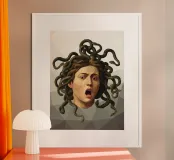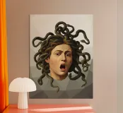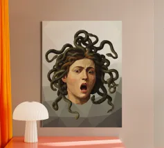 Medusa (stile Lowpoly) ispirazione dal dipinto di Michelangelo Merisi da Caravaggio 1597 Due versioni di Medusa sono state create dal pittore barocco italiano Michelangelo Merisi da Caravaggio, una nel 1596 e l'altra nel 1597 circa. Entrambe raffigurano il momento della mitologia greca in cui la gorgone Medusa viene uccisa dal semidio Perseo, ma le Meduse sono anche autoritratti. Per il suo disegno bizzarro e intricato, si dice che il dipinto mostri il fascino unico di Caravaggio per la violenza e il realismo.