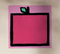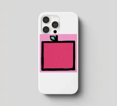 Una deliziosa mela rossa dipinta a mano in stile astratto angolare.