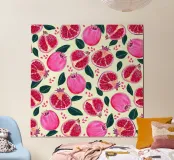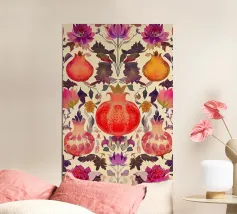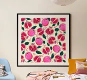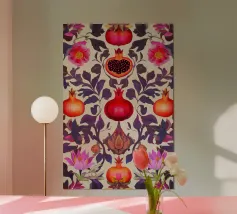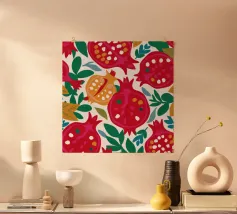 Il design "Pomegranate" mostra una rappresentazione stilizzata del nobile frutto con i suoi semi succosi e i suoi colori vivaci - un simbolo di abbondanza, vita ed eleganza. Il motivo finemente lavorato combina la precisione botanica con un tocco decorativo e conferisce agli ambienti un tocco vivace e sofisticato. Ideale per soggiorni, cucine o aree creative alla ricerca di un tocco natural chic.