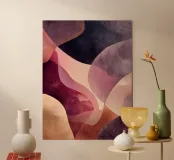 Ricche tonalità prugna, beige e malva si fondono come un movimento liquido. Un lussuoso astratto che sembra allo stesso tempo radicato ed etereo.