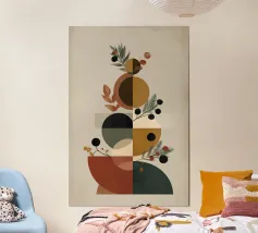 Questo giocoso albero di Natale reimmagina la tradizione festiva attraverso la semplicità della forma pura. Costruito con cerchi sovrapposti e accenti geometrici nelle calde tonalità della terra, l'opera d'arte riflette il minimalismo Bauhaus con un gioioso tocco stagionale. Un'aggiunta raffinata e artistica alle pareti contemporanee delle feste.