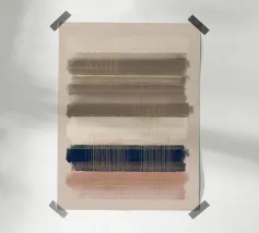 A modern geometric composition featuring parallel lines and textured blocks.