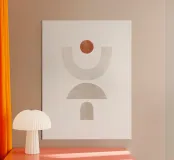 Quest'opera d'arte astratta presenta una disposizione equilibrata di forme geometriche in morbide tonalità neutre e un sottile accento terroso. La composizione minimalista incarna la semplicità e la calma, rendendola una scelta perfetta per gli interni moderni. Il suo design pulito e la tavolozza tenue si adattano a una varietà di spazi, dal soggiorno all'ufficio. Ideale per chi apprezza l'estetica contemporanea con un tocco di influenza moderna di metà secolo, questo pezzo porta un senso di armonia e stile alle vostre pareti.